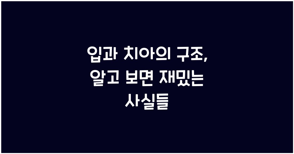 입과 치아의 구조를 이해하자입과 치아의 구조는 우리가 매일 사용하는, 그러나 쉽게 간과하는 신비로운 세계입니다. 입은 단순히 음식을 씹고 삼키는 기능만을 가진 것이 아니라, 다양한 감각과 소통의 창구로서의 역할을 합니다. 이 구조에 대한 깊이 있는 이해는 우리의 잇몸 건강뿐만 아니라, 전반적인 건강에도 큰 영향을 미칠 수 있습니다. 특히 치아는 우리의 식사뿐만 아니라 외적인 미모에도 많은 영향을 끼친답니다!입과 치아의 구조 더 알아보기입과 치아의 구조를 살펴보면, 먼저 입술에서 시작됩니다. 입술은 외부 환경으로부터 내부를 지키는 방어선 역할을 하며, 다양한 감각을 전달하는 중요한 기관입니다. 그 안쪽에는 혀와 잇몸이 자리 잡고 있으며, 이들이 각기 다른 기능을 통해 입과 치아의 조화를 이루고 있습니다. ..